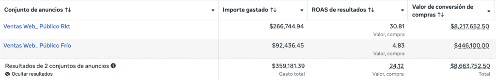 Para entender la magnitud de este resultado, analicemos los datos duros obtenidos a través de la gestión de anuncios en Meta Ads: